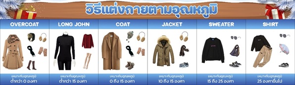 ฤดู | เดือน | อุณหภูมิ | เสื้อผ้าที่แนะนำ |