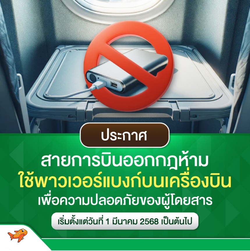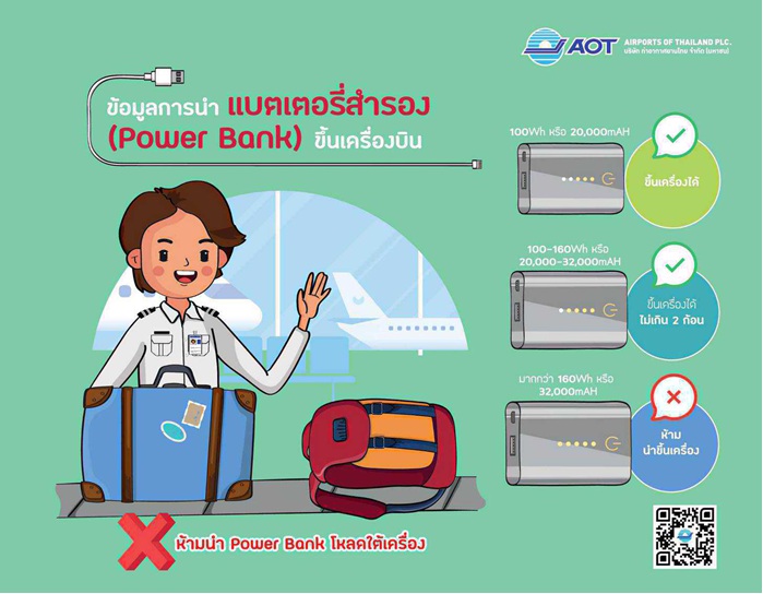 Power Bank ต้องพกติดตัวขึ้นเครื่องเท่านั้น ห้ามโหลดใต้เครื่อง